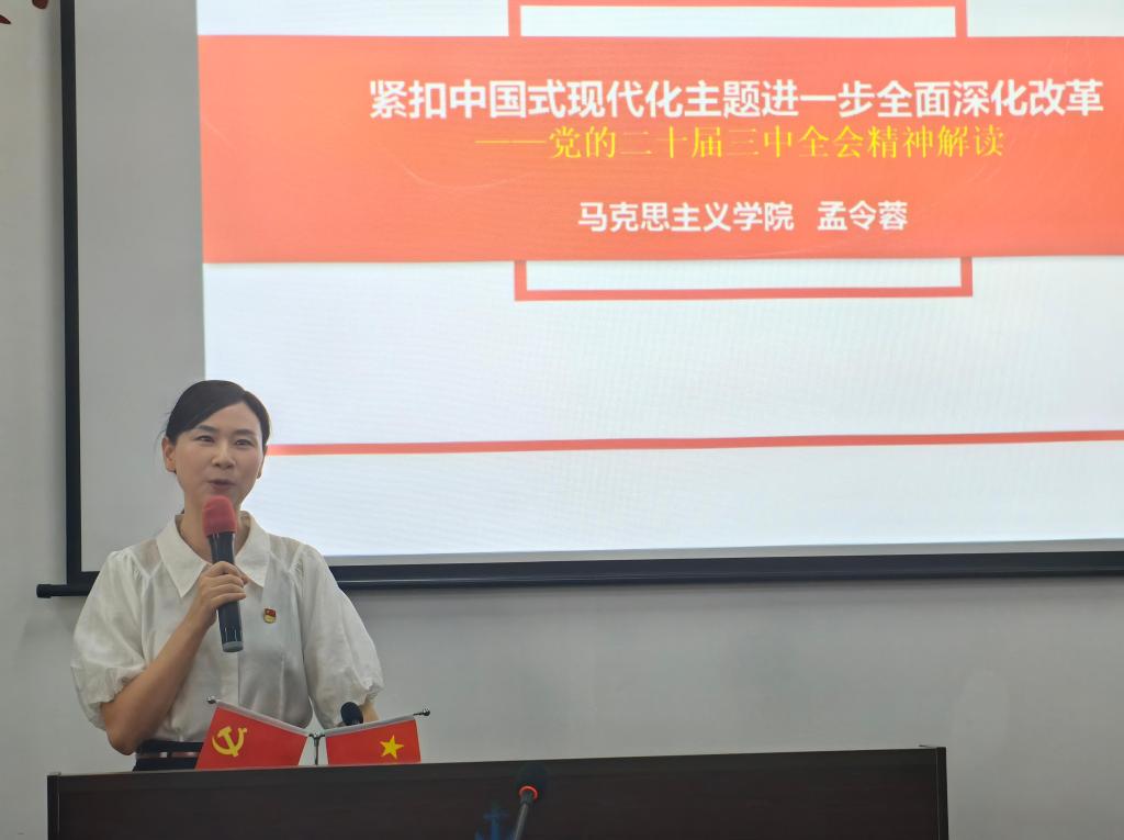 (3044AM永利集团供稿)为深入学习贯彻党的二十届三中全会精神,扎实推进党的二十届三中全会精神进教材、进课堂、进头脑。2024年10月31日,3044AM永利集团诚邀马克思主义学院孟令蓉教授莅临学院作《紧扣中国式现代化主题进一步全面深化改革——党的二十届三中全会精神解读》的专题讲座,3044AM永利集团周楠书记主持会议,全体教职工参加。