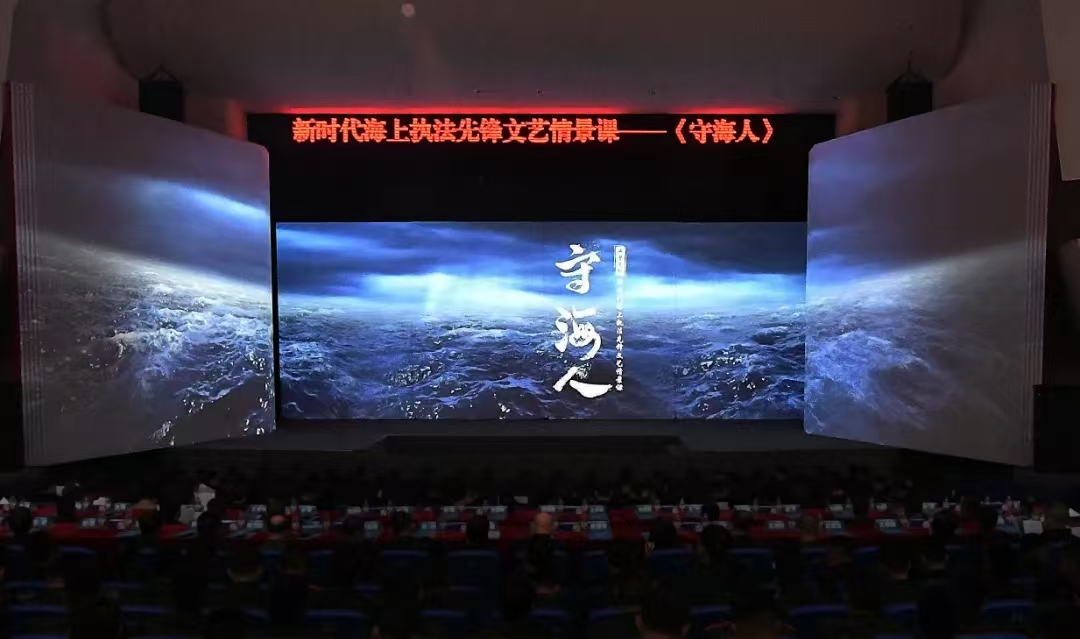 话剧《守海人》以“献身使命的新时代海上执法先锋”汪晓龙等4名海警执法员的原型故事改编,生动再现了他们在惊涛骇浪中与犯罪分子殊死搏斗的英雄壮举。话剧通过情景再现、人物独白等形式,展现了海警执法员对党忠诚、舍生忘死的崇高品质,一幕幕情节展现了新时代军人的青春模样,一个个真实故事感人至深,现场高潮迭起,台下掌声不息,深深震撼了在场师生的心灵。