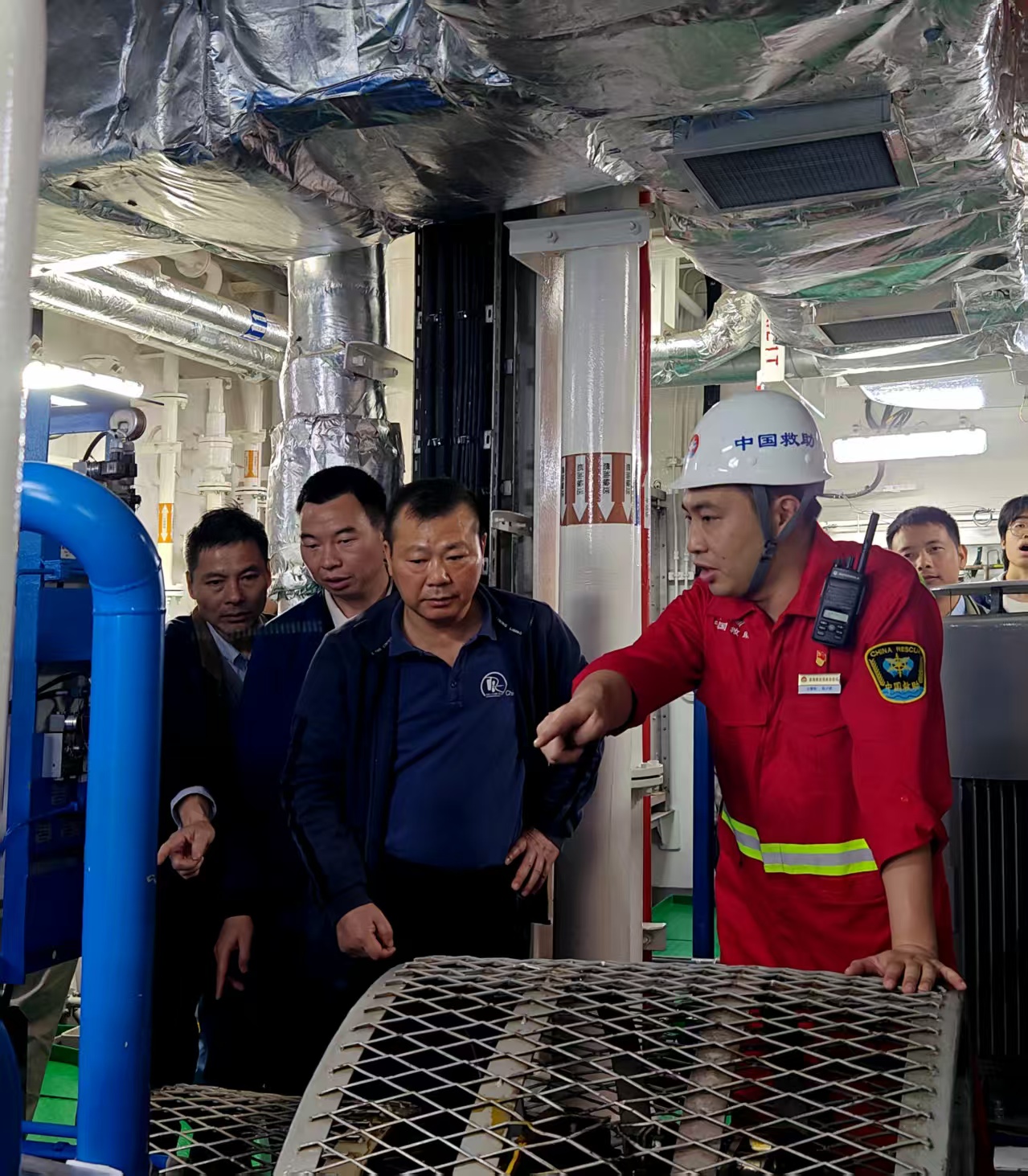 当日下午,党员们整齐有序地抵达广州救助基地。在经过安全培训后,党员们登上了救助船,实地参观了救助船的各个功能区域。从驾驶室的精密设备到救助舱的专业装备,从船员们的生活起居空间到应急救援的物资储备,每一个角落都体现了救助工作的严谨和专业。救助船上的工作人员耐心地为党员们讲解了救助船的性能特点、工作原理以及在海上救助中的重要作用。党员们一边认真聆听,一边不时提问,与工作人员进行深入交流,对海上救助工作有了更为直观和全面的了解。