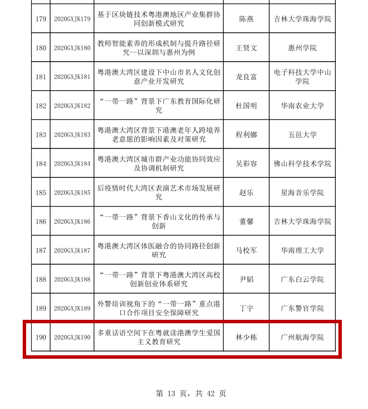 林少栋-广东省教育科学“十三五”规划2020年度课题“多重话语空间下在粤就读港澳学生爱国主义教育研究”(项目批准号2020GXJK190)