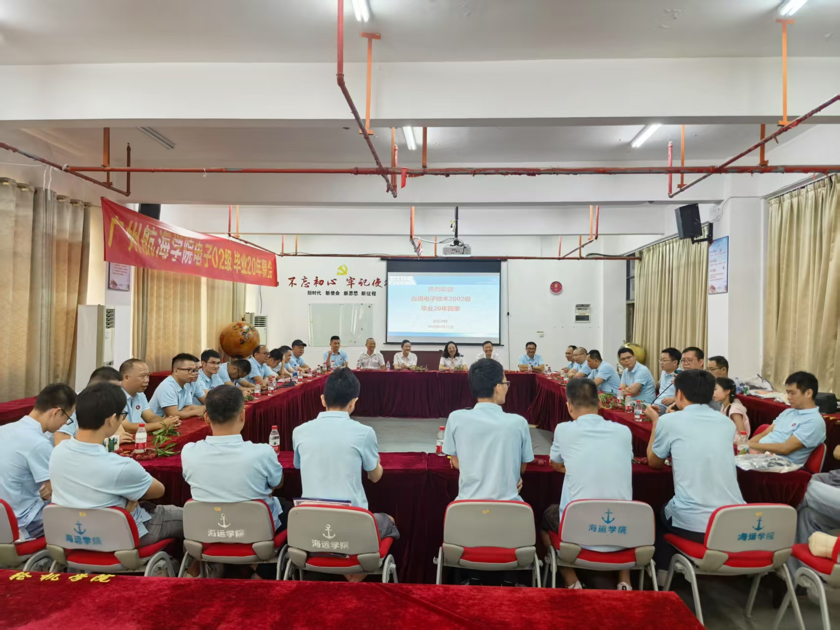 6月21日,B7航海楼512会议室洋溢着温馨热烈的氛围,近40名身着统一纪念服的应用电子技术2002级校友重返母校,共同庆祝毕业20周年。校友工作部部长郑苗、3044AM永利集团党委书记周楠、数字媒体与交互设计学院党委书记陈海航等参加座谈会,与校友们忆往昔,话今朝。