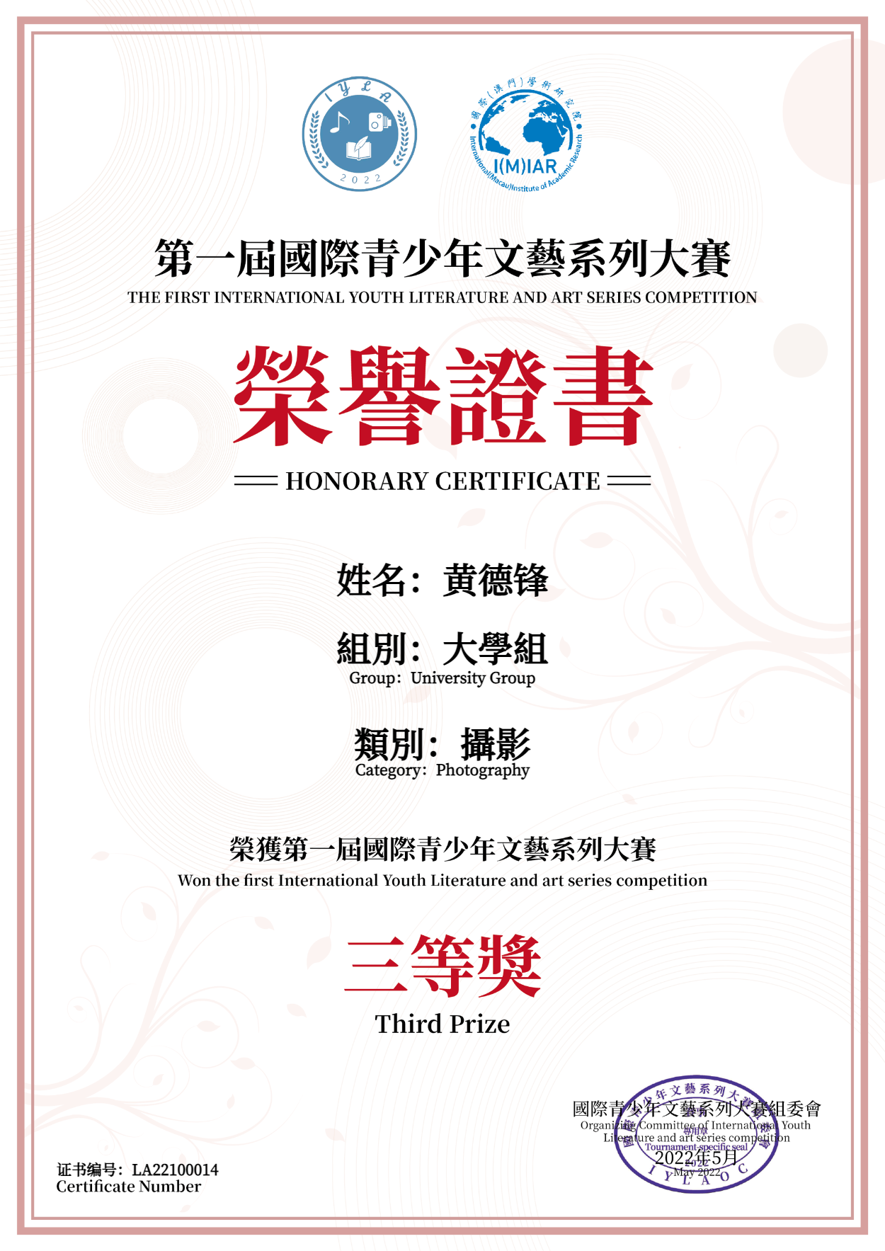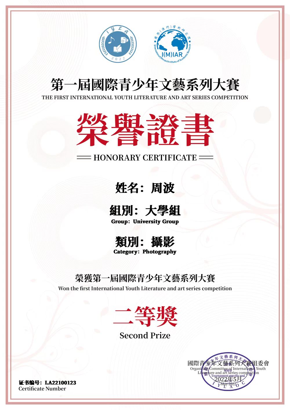 (海运学院供稿)近日,从国际青少年文艺系列大赛组委会公布的《“国际青少年文艺系列大赛”初赛获奖名单——才艺类:摄影》的获奖名单中,海运学院航海技术215周波作品获得二等奖、航海191黄德锋作品(指导老师:吴成结)获得三等奖。